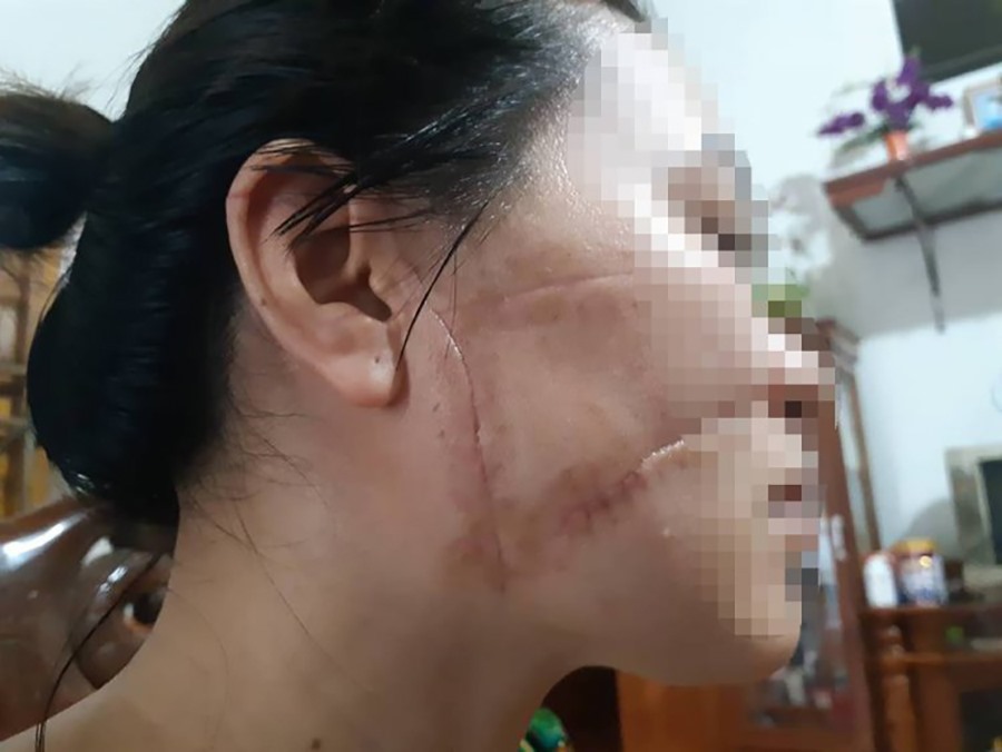 Chị O bị chồng hờ rạch rách mặt. Ảnh: ĐN.